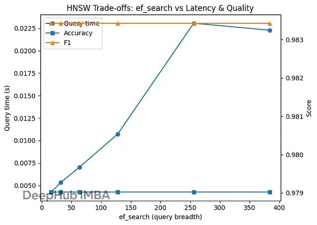 ef_search=128 -> Acc=0.9790, F1=0.9834, QueryTime=0.0107s