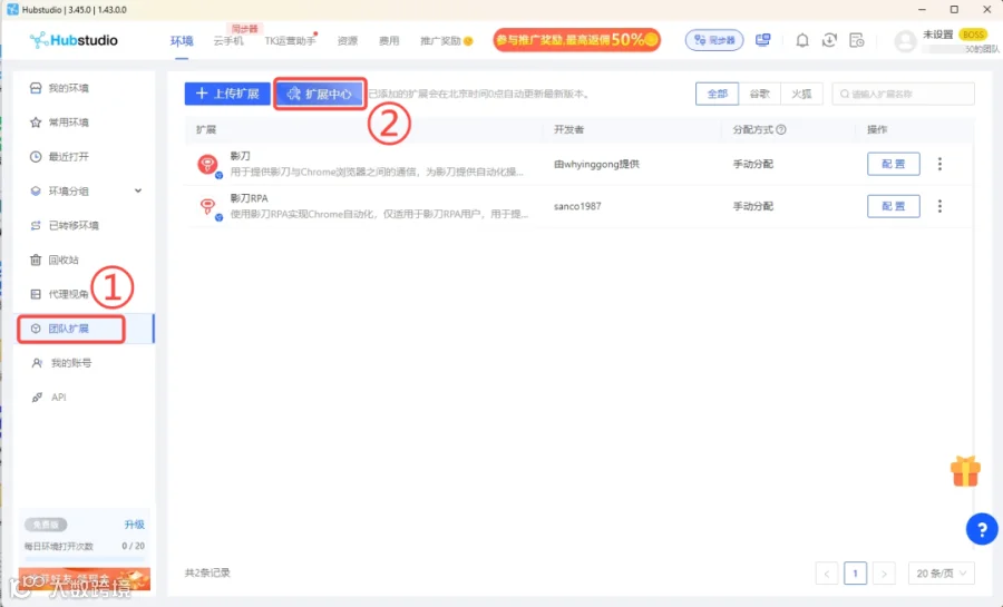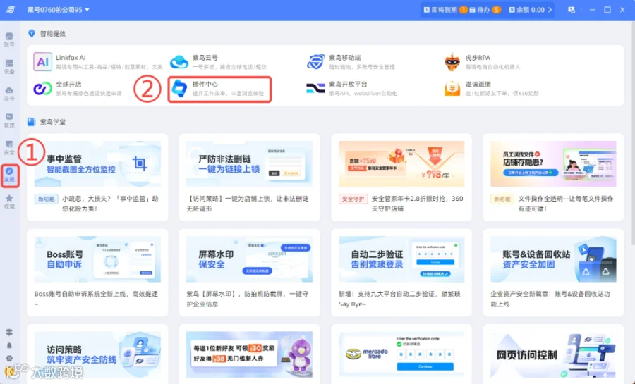例如:紫鸟浏览器、战斧浏览器、飞跨浏览器、易得客、跨境卫士、BitBrowser、HubStudio Browser等指纹浏览器,需要在指纹浏览器控制台中的插件中心为所需环境(店铺)分配插件。