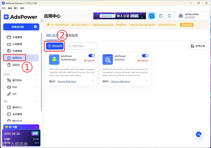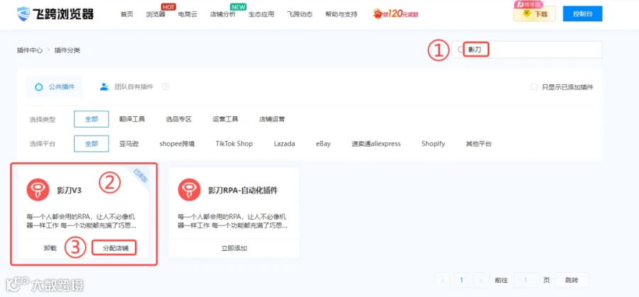 搜索影刀→立即添加→分配店铺