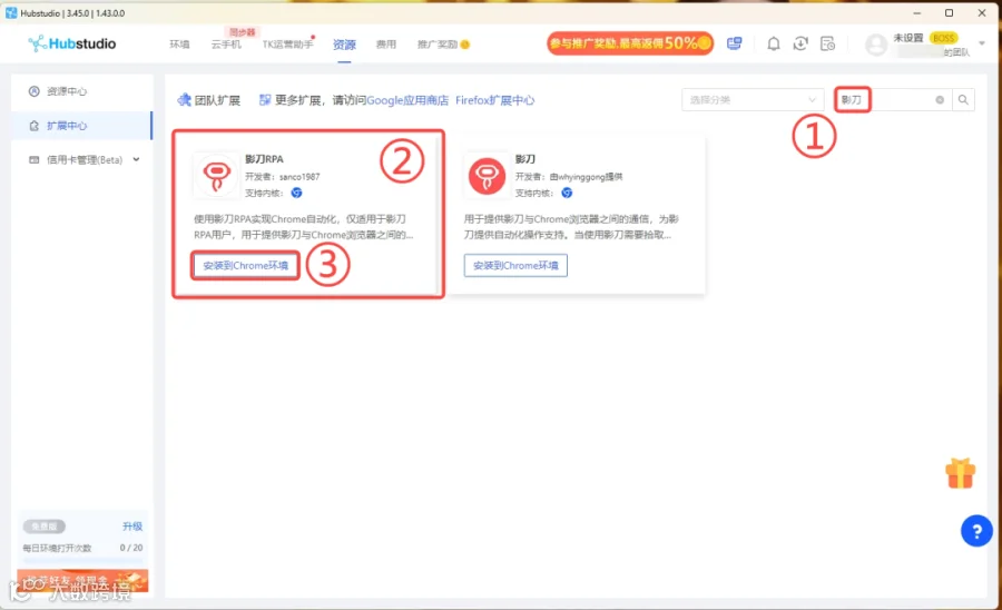 搜索影刀,点击安装到Chrome环境。