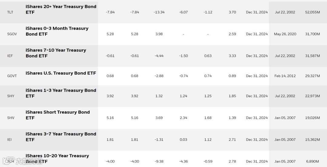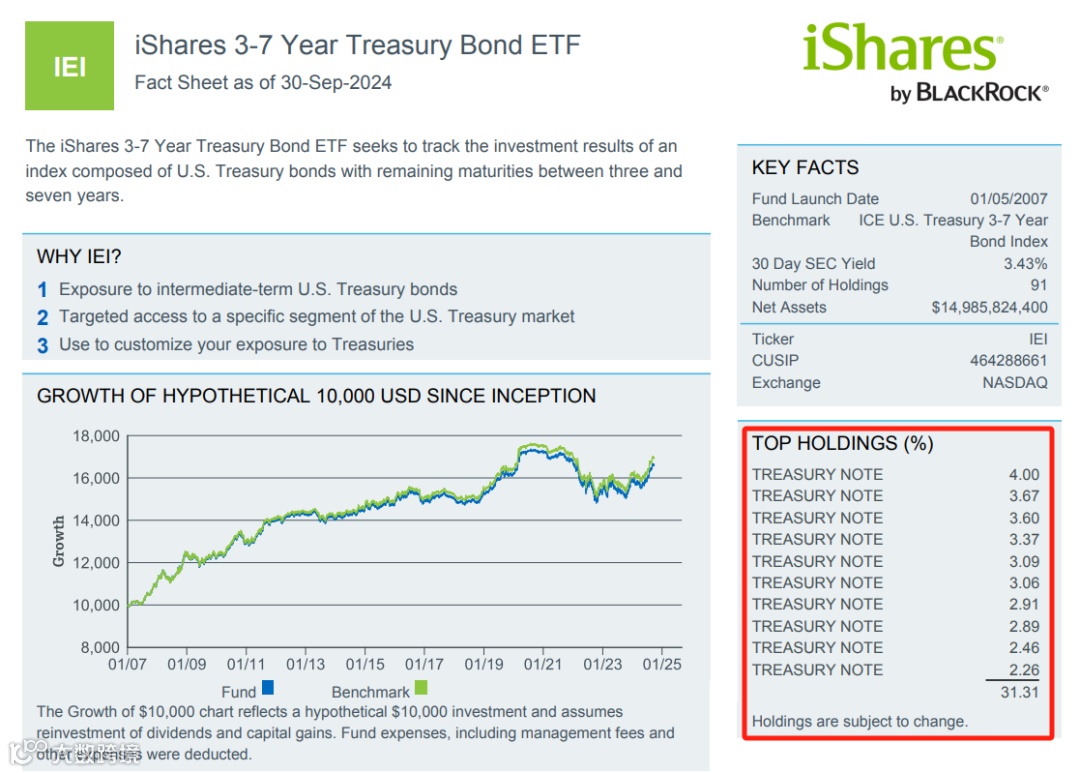 美股市场也有丰富的ETF选择,如iShares发行的不同期限美债ETF,主要投资于剩余期限3至7年的美国国债。