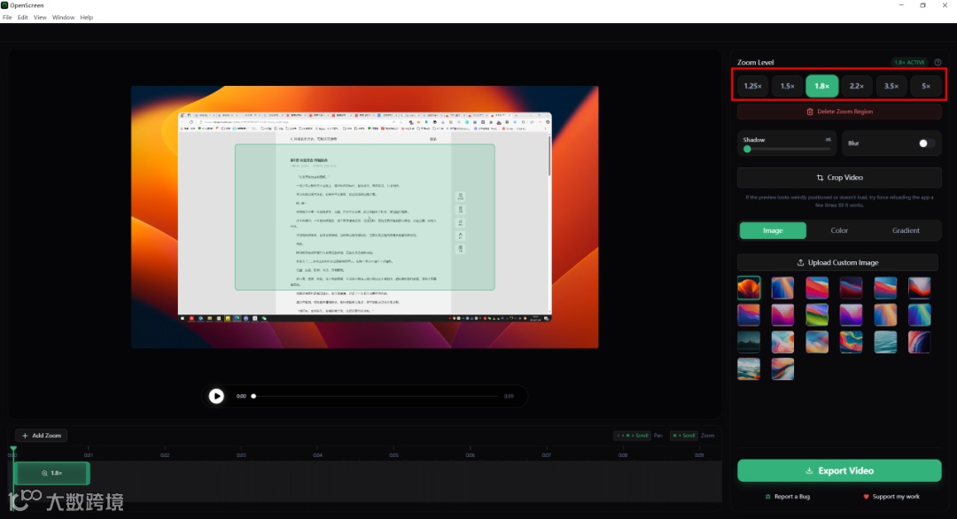 软件支持视频裁切,可以只保留重要信息画面,支持添加背景,内置多种背景样式可以选择。