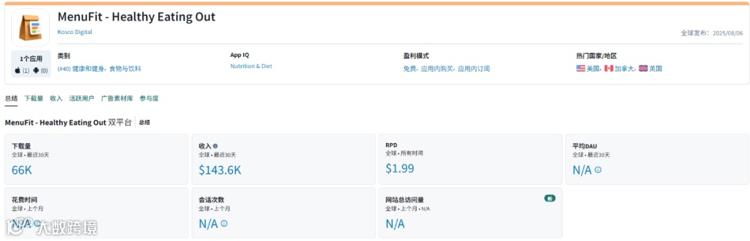 数据表现:2025年8月6日全球发布,近30天下载量6.6万次,月IAP收入14.36万美元。