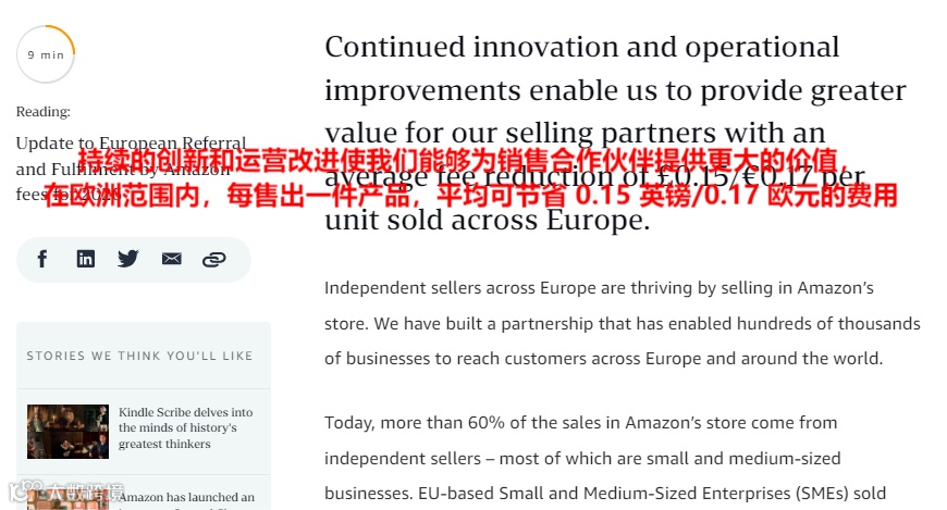 亚马逊下调欧洲卖家费用 图源:aboutamazon.eu