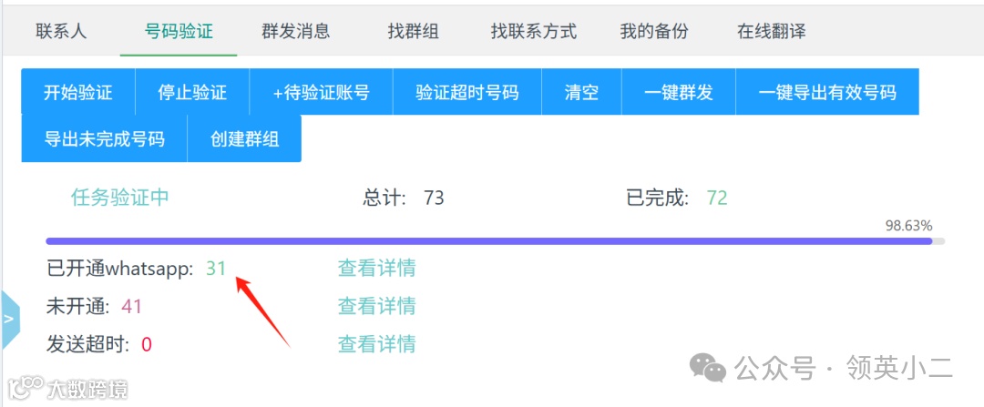 - 批量验证提效:使用内置工具批量校验电话有效性。实测捷克 83 家企业中,77 家留有电话,验证后 31 个为有效 WhatsApp 号,可立即启动开发[15]。