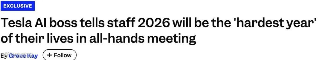 Elluswamy强调,2026年是关键考验,员工将面临前所未有的工作强度,唯有如此才能支撑战略落地。