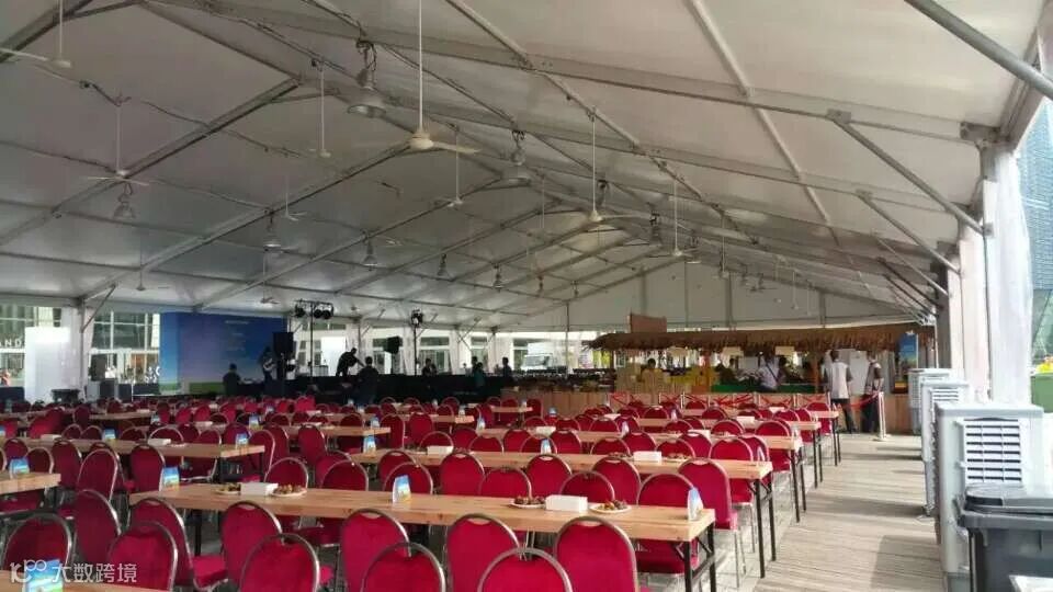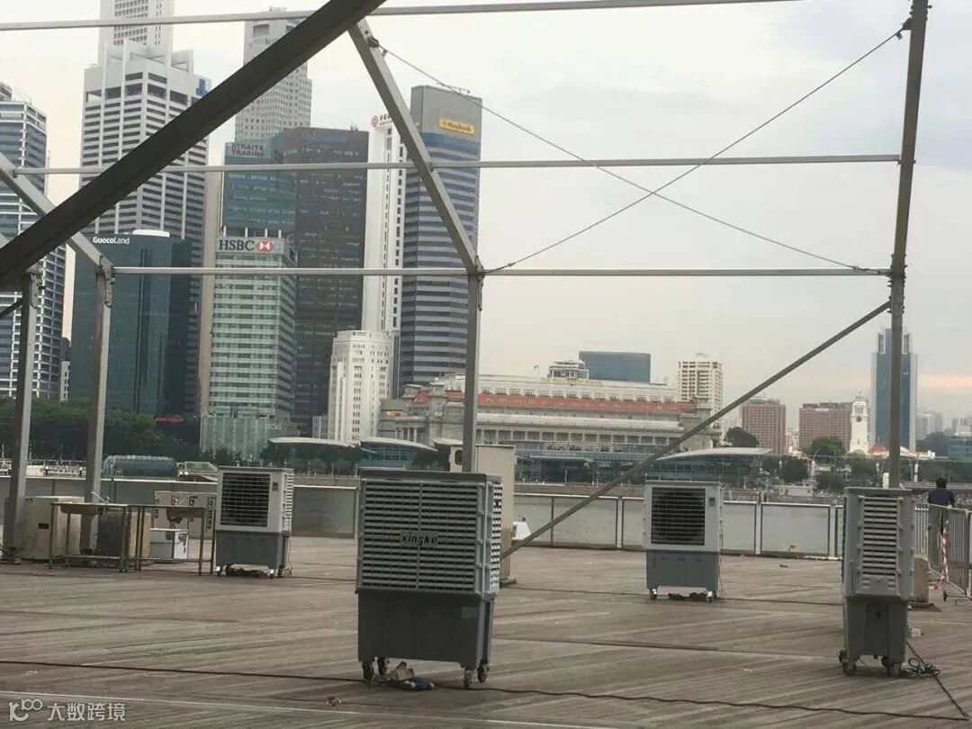 户外露天阳台。“每次聚会结束都只剩下那几台维持现场降温的冷风机。”