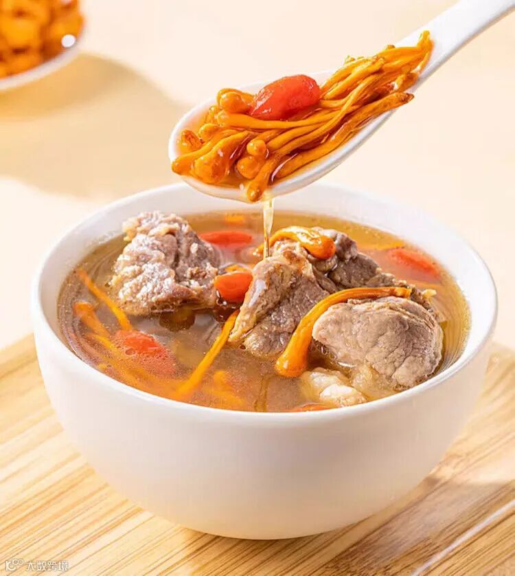 炖汤:鲜到不用放味精:炖鸡汤、排骨汤时,扔一把虫草花进去,不用加其他调料,煮出来的汤会变成淡淡的金黄色,菌香和肉香融合得刚好,喝一口满嘴鲜,连汤底的油花都变得不腻了,秋冬喝一碗浑身暖;