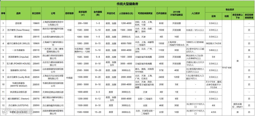 传统大型健身房,基本分布在全国一二线城市,拥有成熟的运营经验和教练资源,以“年卡+私教”模式为主。