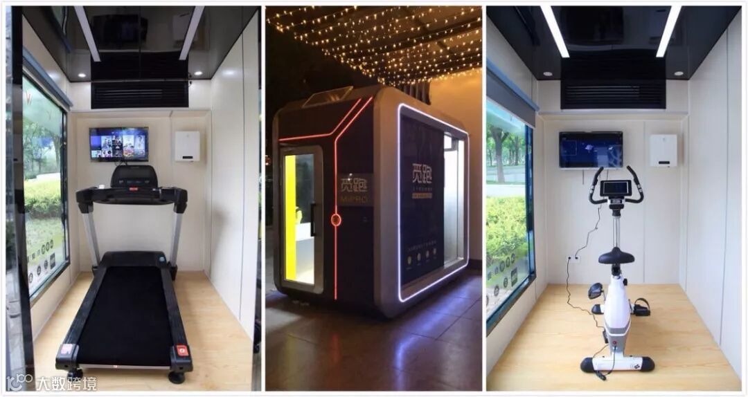 ●运营24小时共享运动仓,觅跑2.0版本健身仓在硬件设施上有所强化,4平米左右的空间内除了电视、Wi-Fi,新增了影音游戏娱乐设备,以及负离子智氧新风净化系统;