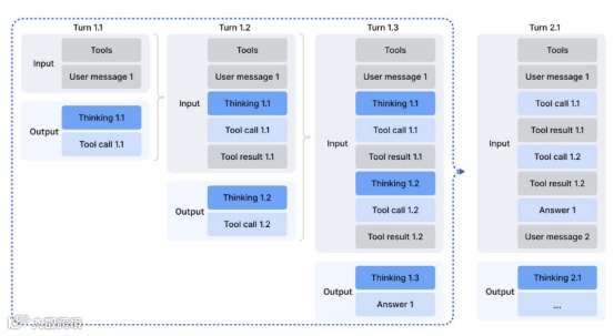 传统AI在多轮工具调用中易出现“忘记初衷”的状态漂移。DeepSeek V3.2首创支持工具调用的“思考保留”模式:仅当收到新用户输入时才清除历史推理,工具反馈则不中断思维链。