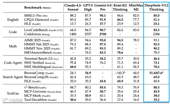 此举终结了“开源模型永远落后”的旧有认知。V3.2在多项推理与Agent评测中表现优于Kimi-K2-Thinking、MiniMax M2等开源模型,Speciale版本更在国际竞赛中超越部分闭源产品。