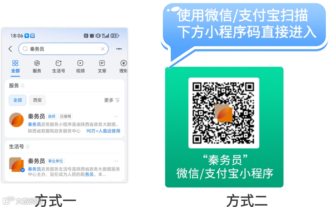 在支付宝或微信中搜索“秦务员”,即可进入小程序。