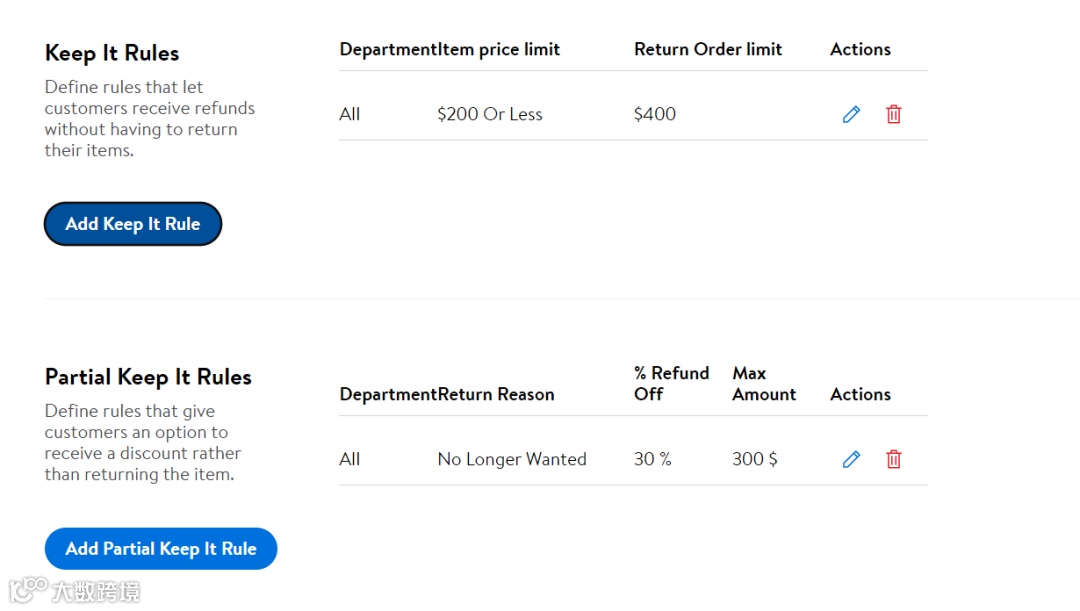 Keep It Rules/Partial Keep It Rules:可为顾客在退货时选择完全保留,或部分退款但是可以保留产品的备选方案。虽说会导致部分顾客白嫖,但也在一定程度上可以减少退货运费(白嫖党会利用各种机会进行白嫖,不管有没有keep It Rules)。若退货后产品无法继续翻新销售或利用,还是建议根据卖家自身实际情况去开启Keep It Rules/Partial Keep It Rules。