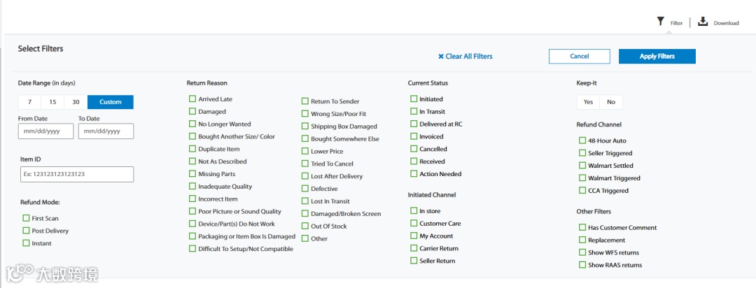 打开Return&Refunds处的过滤器(Filters),可以得到下图: