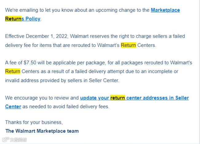 Tips:退货地址一定要是真实且有效,若退货地址无效,轻则配送失败(订单退回到沃尔玛中心,需再额外扣除每单7.5美金的退回运费),重则因合作伙伴信息无效而出现账号暂停、甚至终止。
