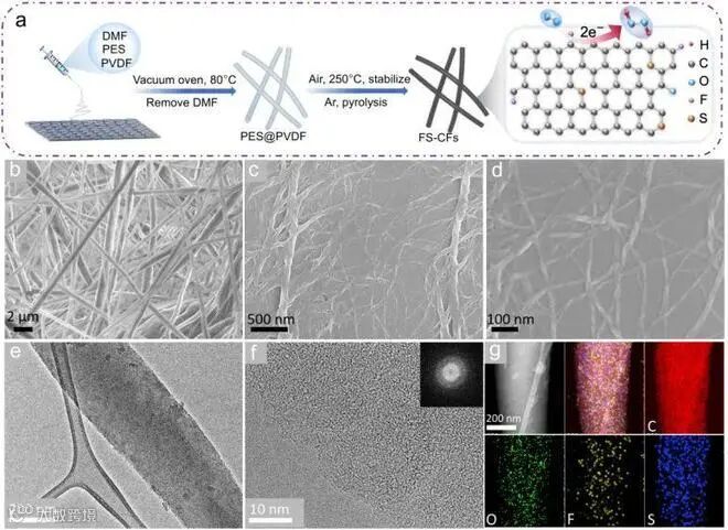 碳纤维催化剂合成示意图以及SEM、TEM表征(来源:Advanced Materials)