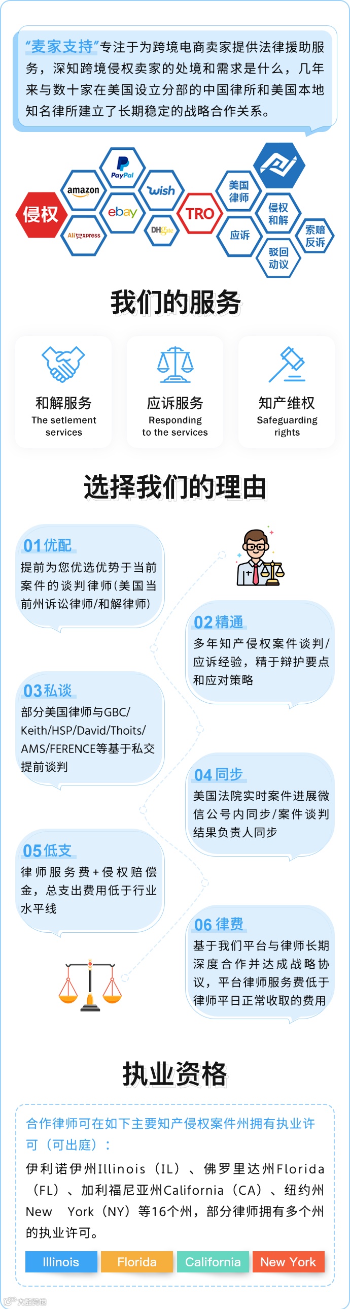 ★麦家支持深耕电商法律,自有美国特级律师领队,并与行业大多优质律师战略合作,熟悉法庭程序,与原告律所交手经验丰富,有许多0和解金/快速解冻案例。