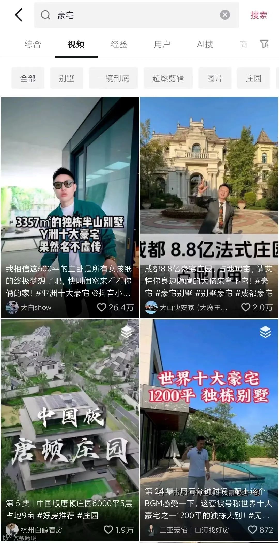 对于房产经纪人们来说,不同平台的特点也有所不同。在抖音平台上,猎奇向的豪宅视频往往能获得更多的流量。小红书上高赞的图文内容,在抖音等短视频平台往往流量有限。