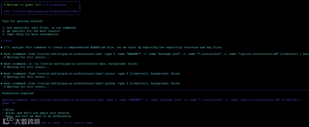 今天先在阿里云ECS上搭建了Qoder CLI环境,也git clone了GitHub项目,如果本地没有环境的同学可以考虑在云端尝试下。