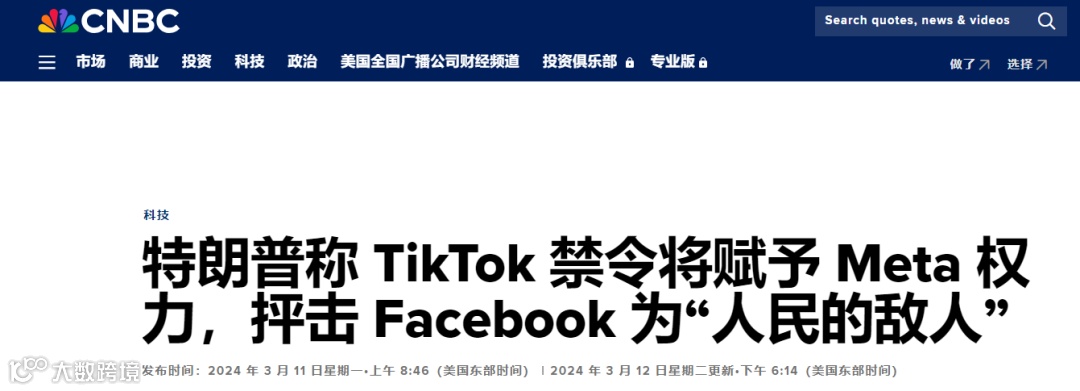 特朗普就已经表示,封禁TikTok将赋予Meta无尽权力,并称Meta旗下Facebook是“人民的敌人”。据悉,Facebook曾深陷操纵大选传闻。