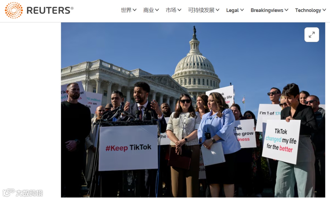 图源:路透社,美国民众在国会大厦外支持TikTok