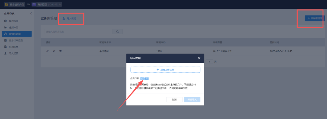 2、把产品下载链接、密匙导入密匙库,密匙库用来管理发给客户的产品,(命名一般就按产品名称或者sku,方便区分)