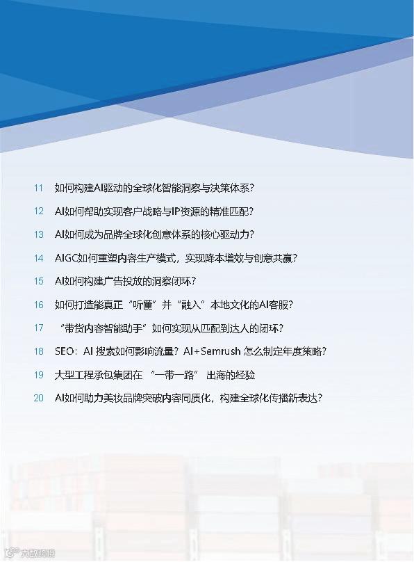 2024年发布的《CAAC品牌出海手册1.0》聚焦“如何走出去”,为出海企业提供了行动路径。新版《手册2.0》以“AI赋能品牌出海”为核心主题,围绕20个关键问题,系统回应AI技术浪潮下的新挑战,涵盖从认知到执行的全链路策略指导。
