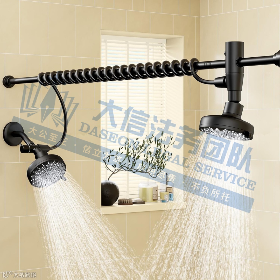 原告为广东籍中国卖家,针对双人淋浴需求研发两款专用沐浴设备,采用双顶喷设计,配备两个独立喷头,支持两人同时使用,兼顾舒适性、便捷性与家庭互动体验。