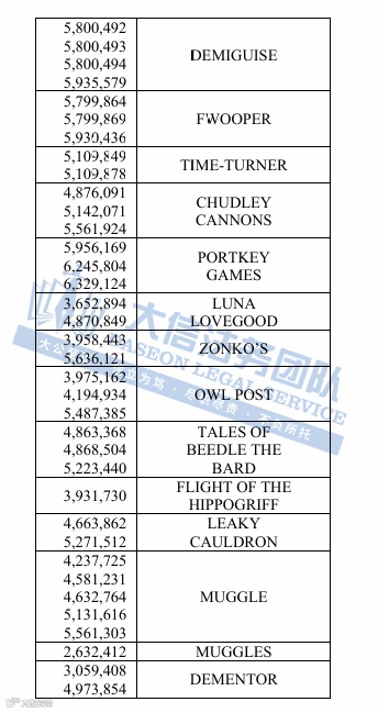 本案为商标侵权,涉及上百个注册商标,覆盖第25类(服装鞋帽)、第28类(玩具运动)、第14类(珠宝钟表)、第30类(方便食品)等多个类别,权利布局广泛。建议跨境电商全面排查含“Harry Potter”及相关标志的商品,及时下架,规避TRO风险。