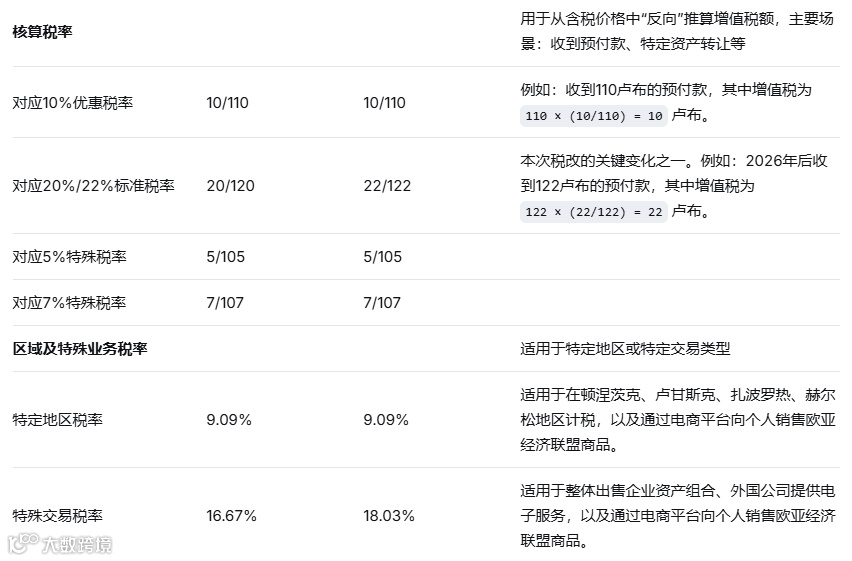 普通税率、特殊税率以及预付款情况下的核算税率制度将继续适用。