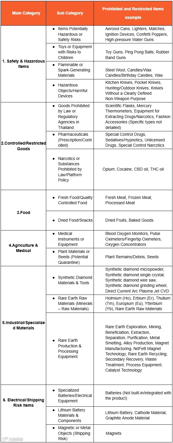 此次政策细化涵盖六大类禁限商品,精准对标泰国监管重点: