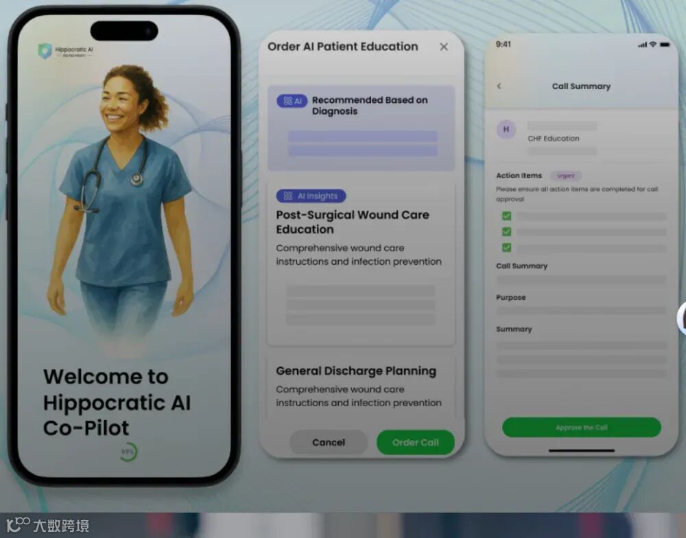 Hippocratic AI聚焦术前准备、出院随访、慢性病管理、用药提醒等非诊断性任务,替代传统呼叫中心与行政岗位。