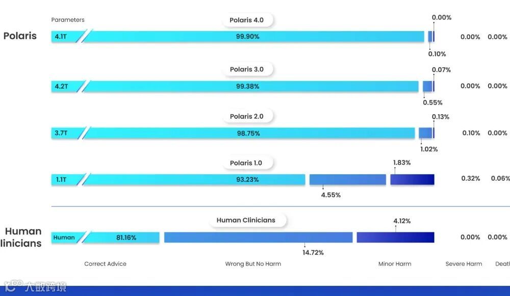 通过该流程的Polaris 3.0在临床准确率达99.38%,远高于美国注册护士平均81%水平。在114项医疗基准测试中,有105项表现优于GPT-4。