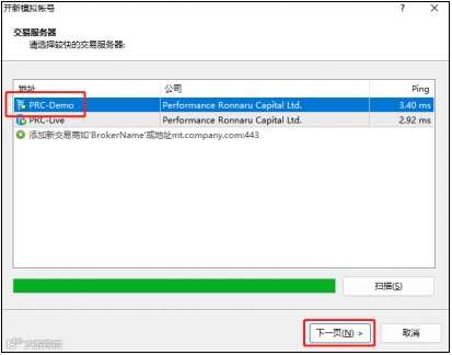 ③ 系统扫描完成后,选择“PRC-Demo”服务器,点击“下一页”;