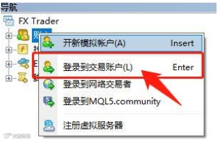 ② 选择“登录到交易账户”;