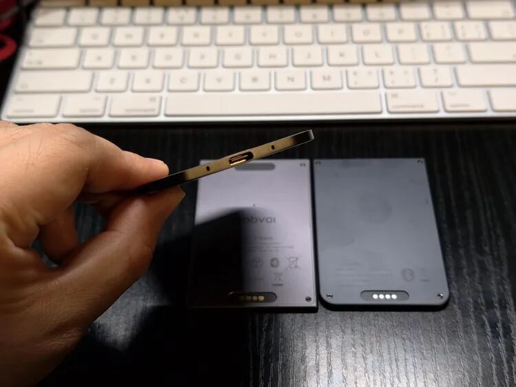 虽然产品形态都叫做“录音卡”,但是能够看出来各家在硬件设计上多多少少还是有着自己的思考。Plaud 和 TicNote 为了机身轻薄,都采用了磁吸充电的形态,在统一接口的大环境下实属另类。虽然它们的续航能力能够满足一整天的使用需求,但是用户终归还需要额外在办公室或家中为他们单独准备一条磁吸数据线。
