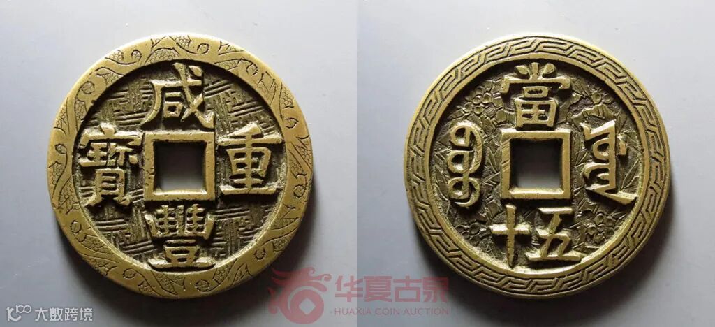 【名称】(华夏评级 极美88)咸丰重宝宝源当五十大样刻花