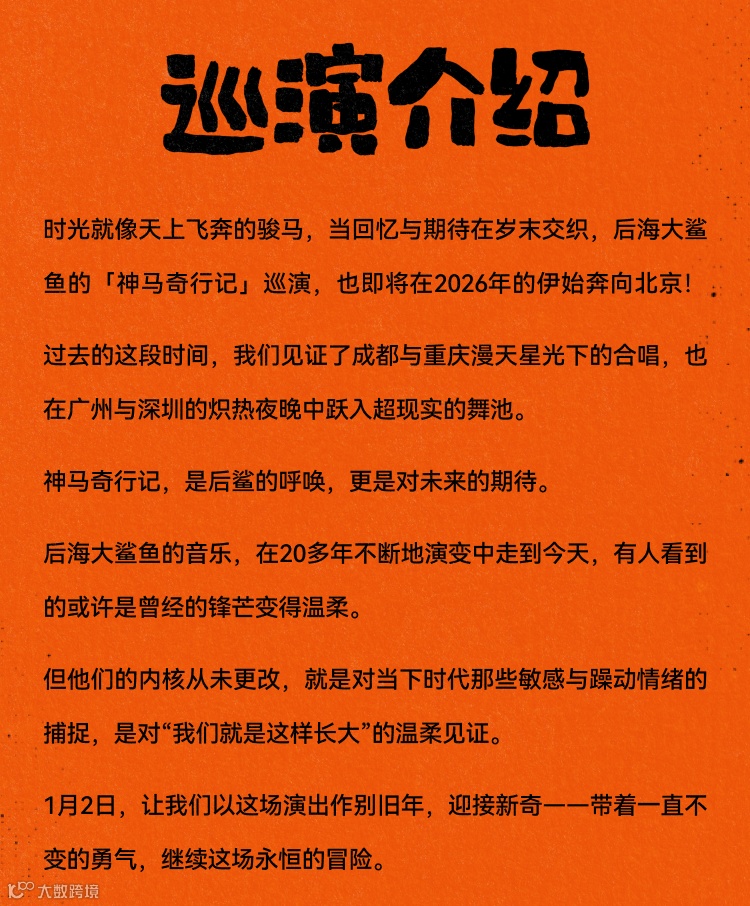后海大鲨鱼「神马奇行记」巡演 | 在2026年的伊始奔向北京!