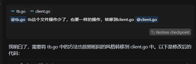 无需过多的上下文补充,告知需求后,让AI结合项目理解跟最佳实践进行实现就行