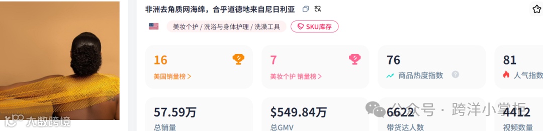 截至目前,该产品在TikTok美区累计销量达57.59万件,GMV达549.84万美元(约人民币4013.50万元),相当于每分钟售出13.6个[k]。热度延伸至亚马逊平台,某三件装组合产品月销超3万件,稳居“Bath sponges”类目前列[k]。