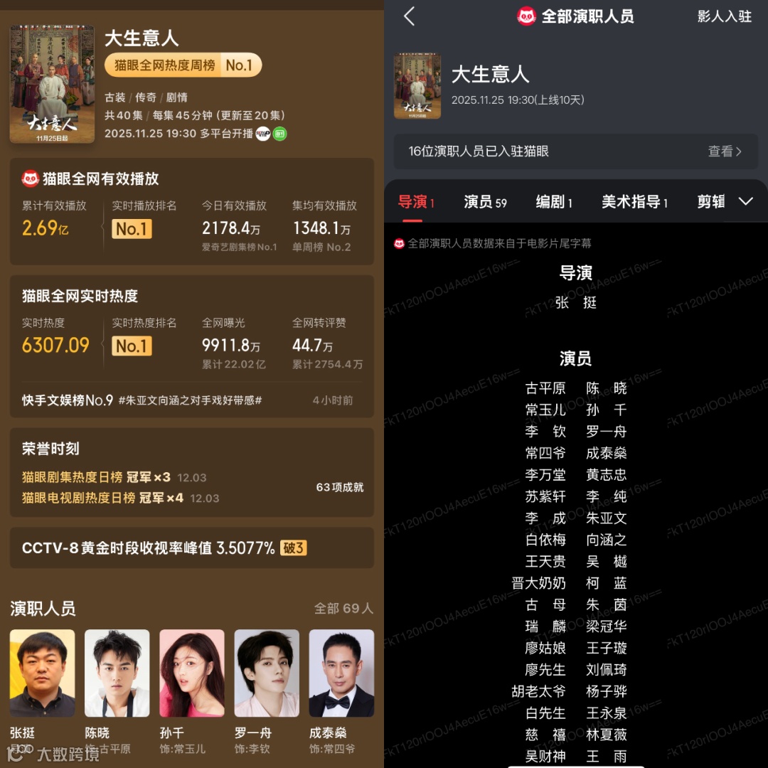 《唐朝诡事录之长安》《枭起青壤》《新闻女王2》《他为什么依然单身》《四喜》《大生意人》6部作品演职人员字幕名单已发布,感谢6000+演职人员的倾力付出🎉