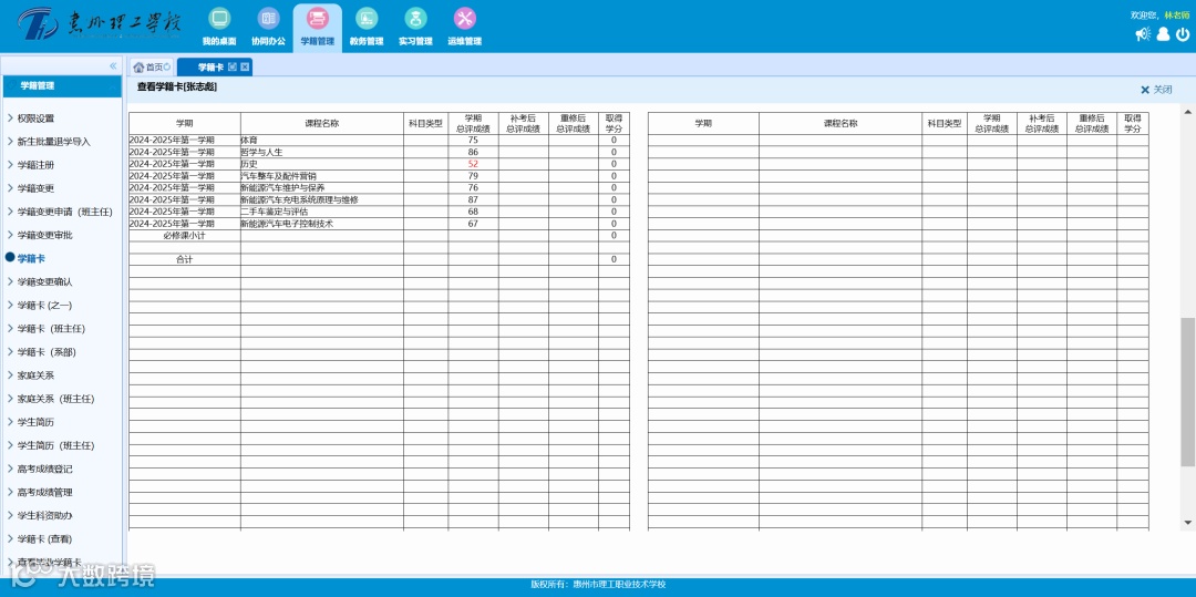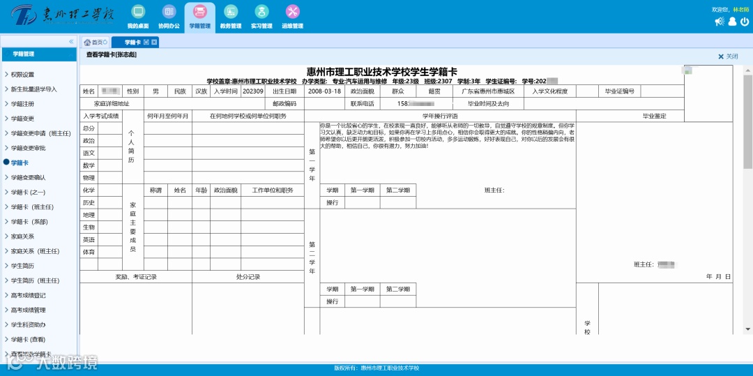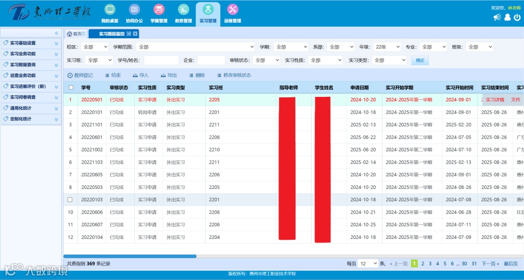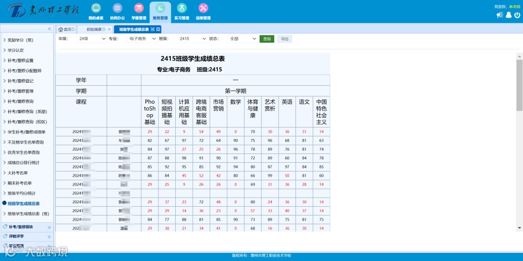 通过智慧校园一、二期系统建设,实现学校行政办公、学籍管理、教学计划、智能排课、成绩管理、评教评学、实习管理等智慧服务一体化管理,将管理各部门联成-一个完整的数据整体,实现信息高度共享,加强信息的可靠性和实时性,为管理部门提供及时、准确的数据。