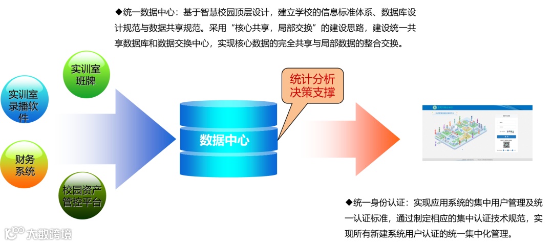 实现六个统一:统一认证中心、统一办事大厅、统一流程中心、统一微校园、统一运维中心。支持对接学校现有业务系统。