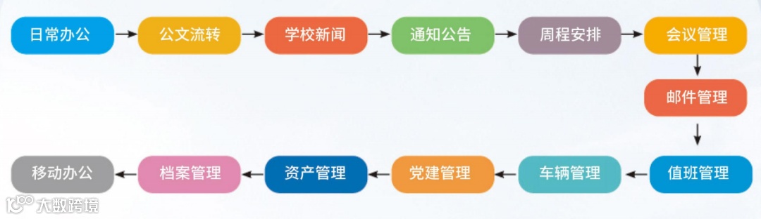 行政办公是行政服务一体化的重要组成部分,行政办公系统紧密贴合学校业务设计,配套工作流引擎,以一套完善的支持群体协作、流程控制、信息管理等内容的应用软件,建立跨部门、跨校区信息交流与公文协作处理的快速通道,改变传统复杂、低效的手工办公方式,实现对工作流、信息流和知识流的全局管理,为学校建立一种开放、网络化、高效的办公新环境。
