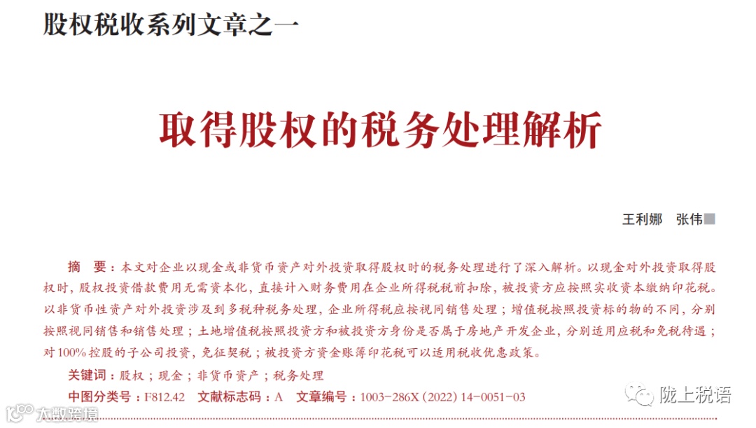 股权税收 | 以现金和非货币性资产投资取得股权,税务处理及案例解析 冉军讲税