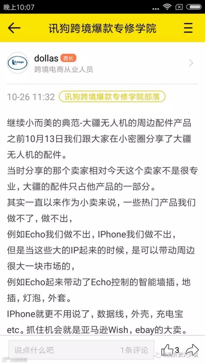 尽管Echo、iPhone等大IP的周边市场竞争激烈,但一些小众市场的潜力不容忽视。例如大疆无人机作为全球占有率较高的品牌,其用户群体收入较高,购买力强,愿意为升级美化配件买单。