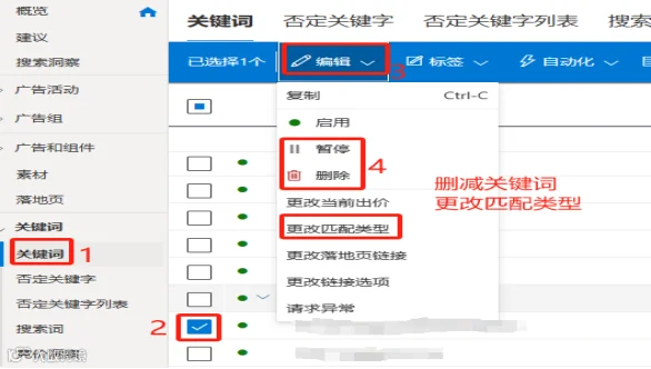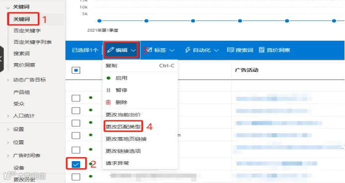 以下是关键词匹配类型区分和调整关键词匹配类型的步骤: