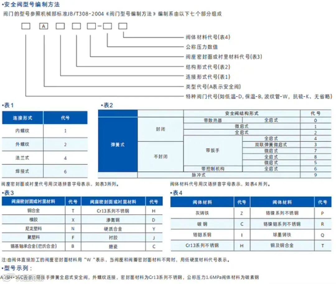 1. A(类型代号):表示安全阀(A是安全阀的专用类型代号)。
