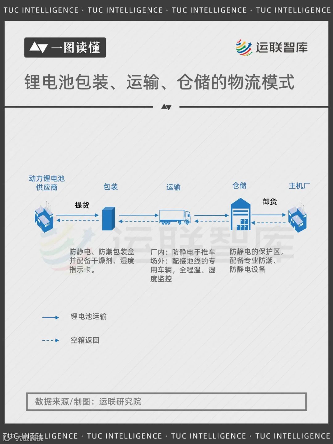 由于锂电池属于危险品,其运输过程中需满足安全要求。物流供应商需提供专业度高,且成本最优化的解决方案。目前的电池承运商大部分不是原先的汽车物流玩家,而是以最佳成本效益优势拿下物流订单的新玩家们。